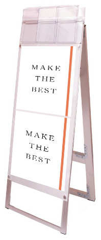 - お洒落な雰囲気にも合うA4三つ折りパンフレット用ケースが付いたスタンド看板