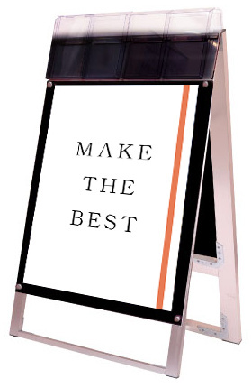 - お洒落な雰囲気にも合うA4三つ折りパンフレット用ケースが付いたスタンド看板