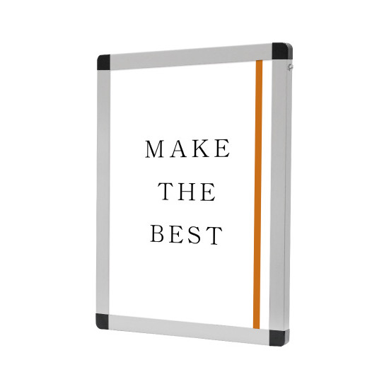 - 【ポスターの交換方法】ポスターの交換は、本体上部の左右にあるビスを取り外し、上辺のフレームを引き抜いてアルミ複合板とアクリルカバーの間にポスターをセットするだけです。