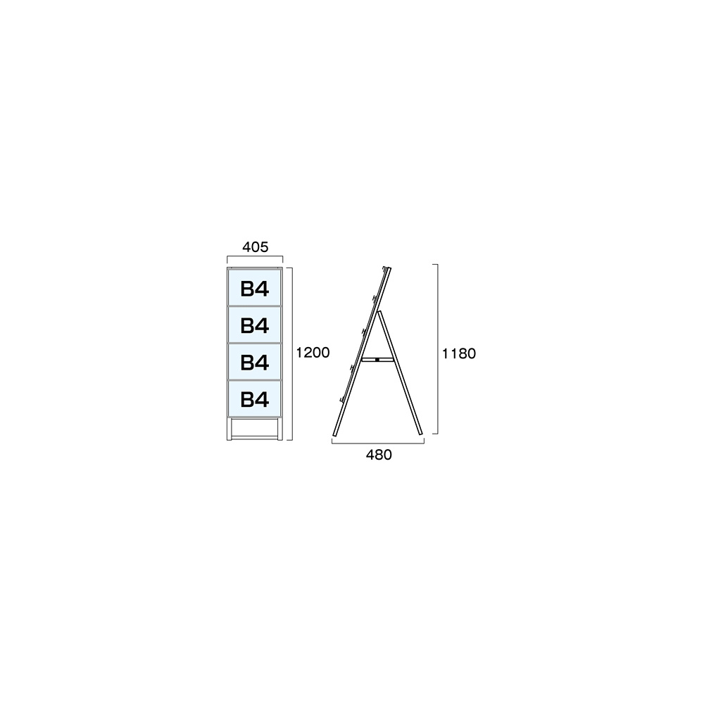 商品説明:B4サイズ カードケーススタンド看板 規格:B4横×4枚 片面 (CCSK-B4Y4K)