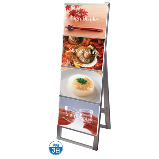 商品説明:A3サイズ カードケーススタンド看板 規格:A3横×4枚 片面 (CCSK-A3Y4K)
