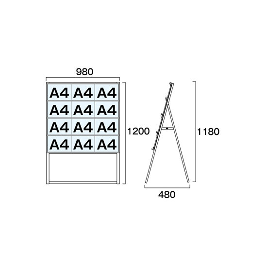- A4サイズ カードケーススタンド看板 規格:A4横×12枚 片面 ハイタイプ (CCSK-A4Y12KH)