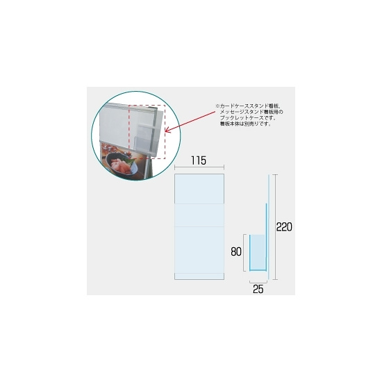 - カードケースを抜いたスペースを利用してパンフレットや冊子等を看板と一緒に設置が出来ます。※パウチしたサインなら一緒に展示可能