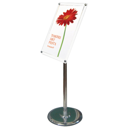 - 化粧ビスの付いたアクリルパネル付スタンドのフリーアングルタイプ