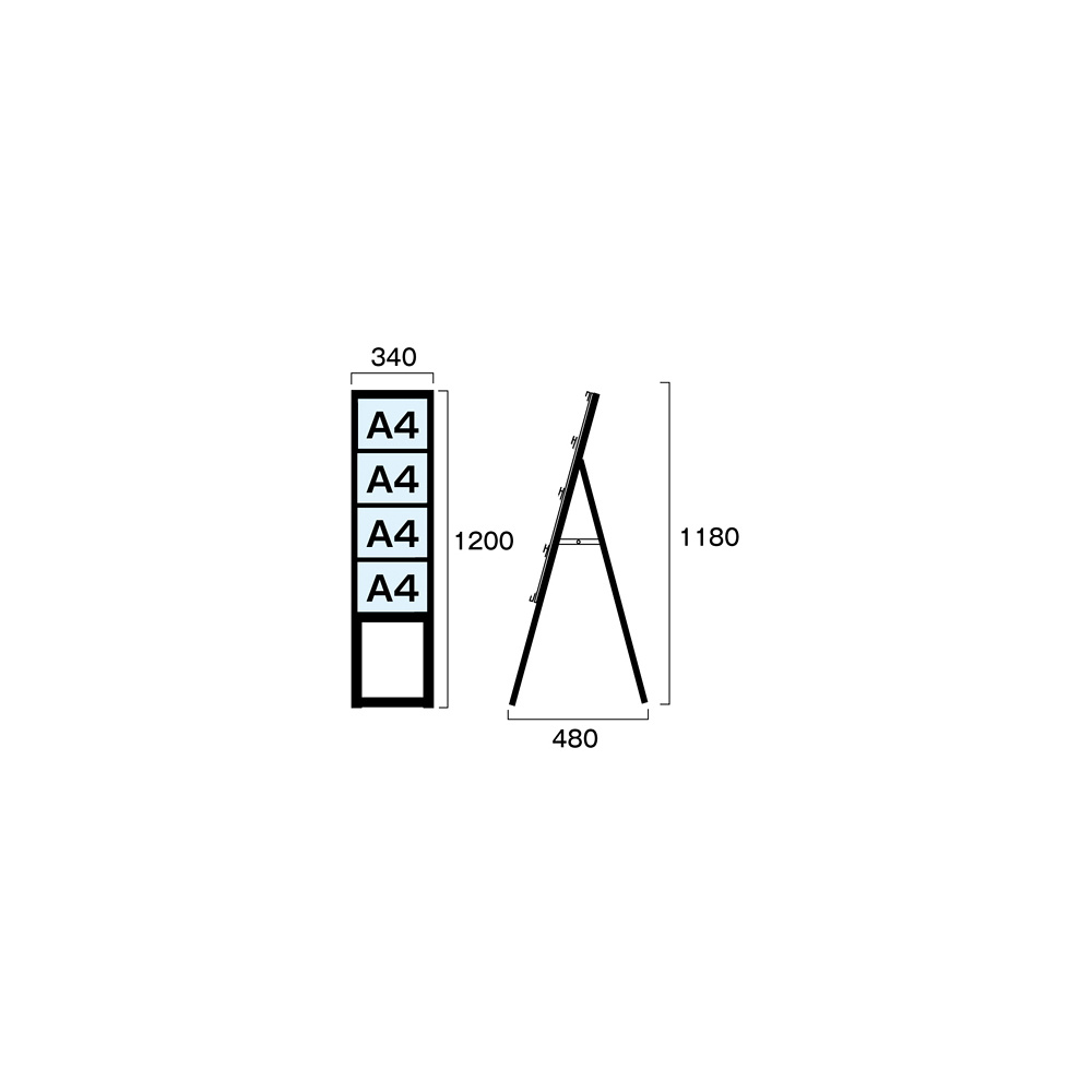 商品説明:ブラック A4サイズ カードケーススタンド看板 規格:A4横×4枚 片面 ハイタイプ (BCCSK-A4Y4KH)