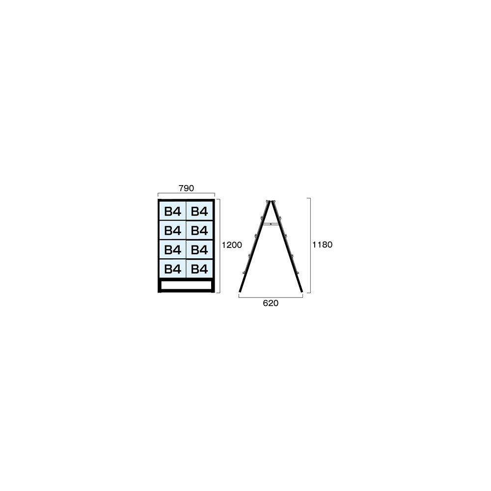 ブラック B4サイズ カードケーススタンド看板 規格:B4横×16枚 両面 (BCCSK-B4Y16R)