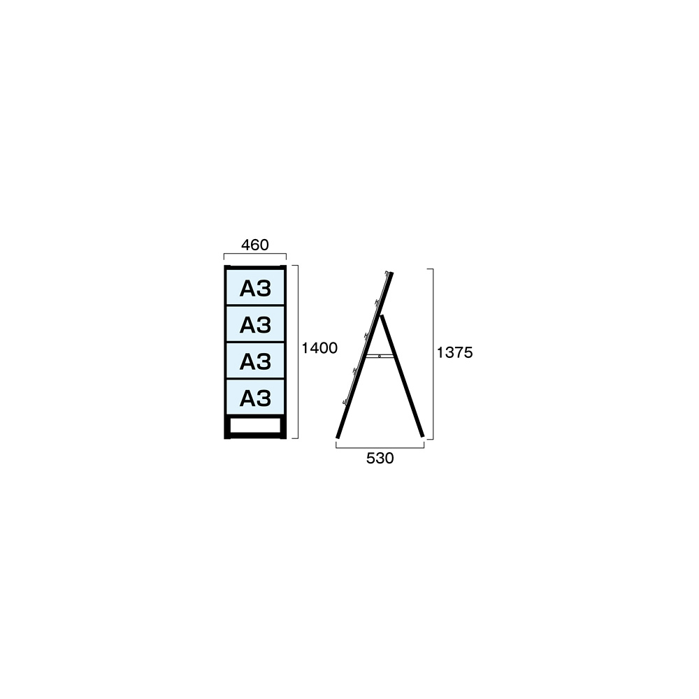 商品説明:ブラック A3サイズ カードケーススタンド看板 規格:A3横×4枚 片面 (BCCSK-A3Y4K)