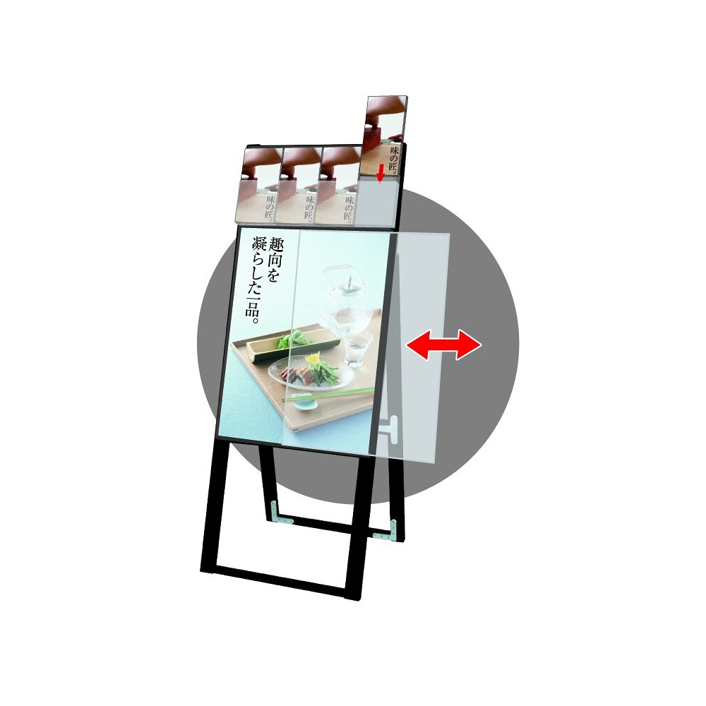 パンフレットケースにはフタはありません - ●パンフレットケースは看板のレールに引っ掛けるだけでOK!