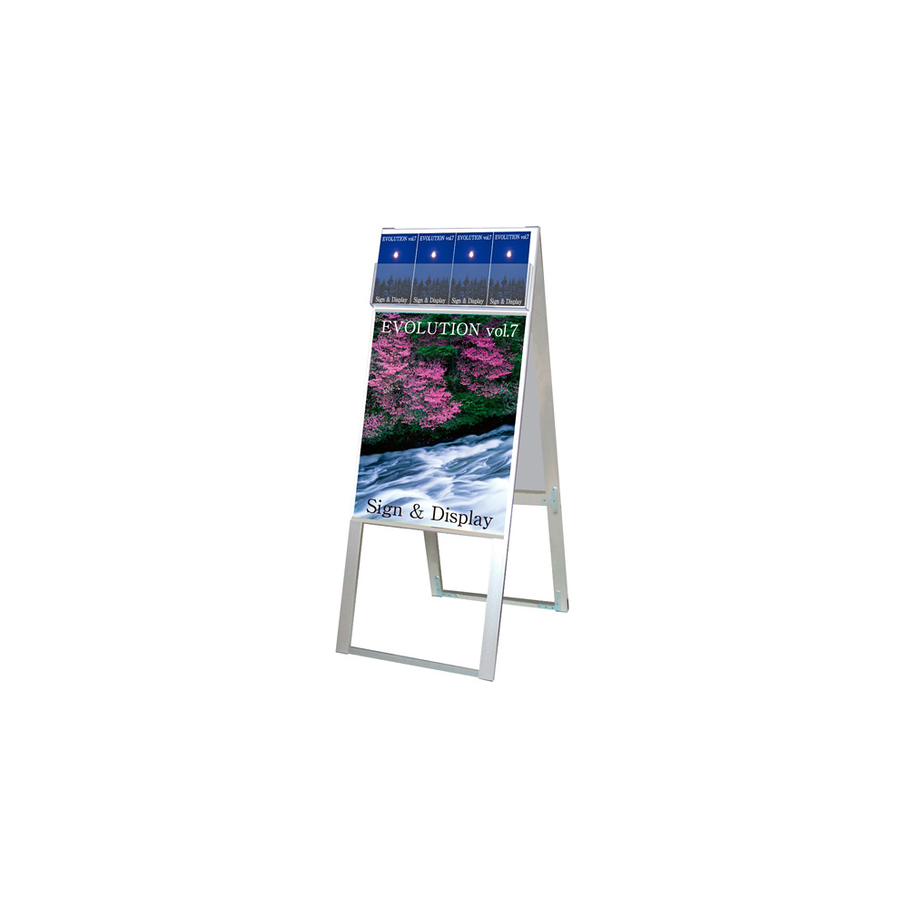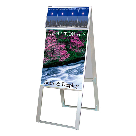- パンフレットとポスターを同時に掲示可能なスタンド看板。