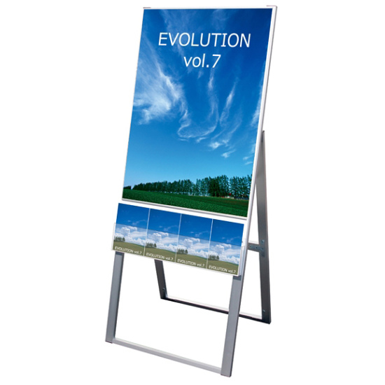 - パンフレットとポスターを同時に掲示可能なスタンド看板。