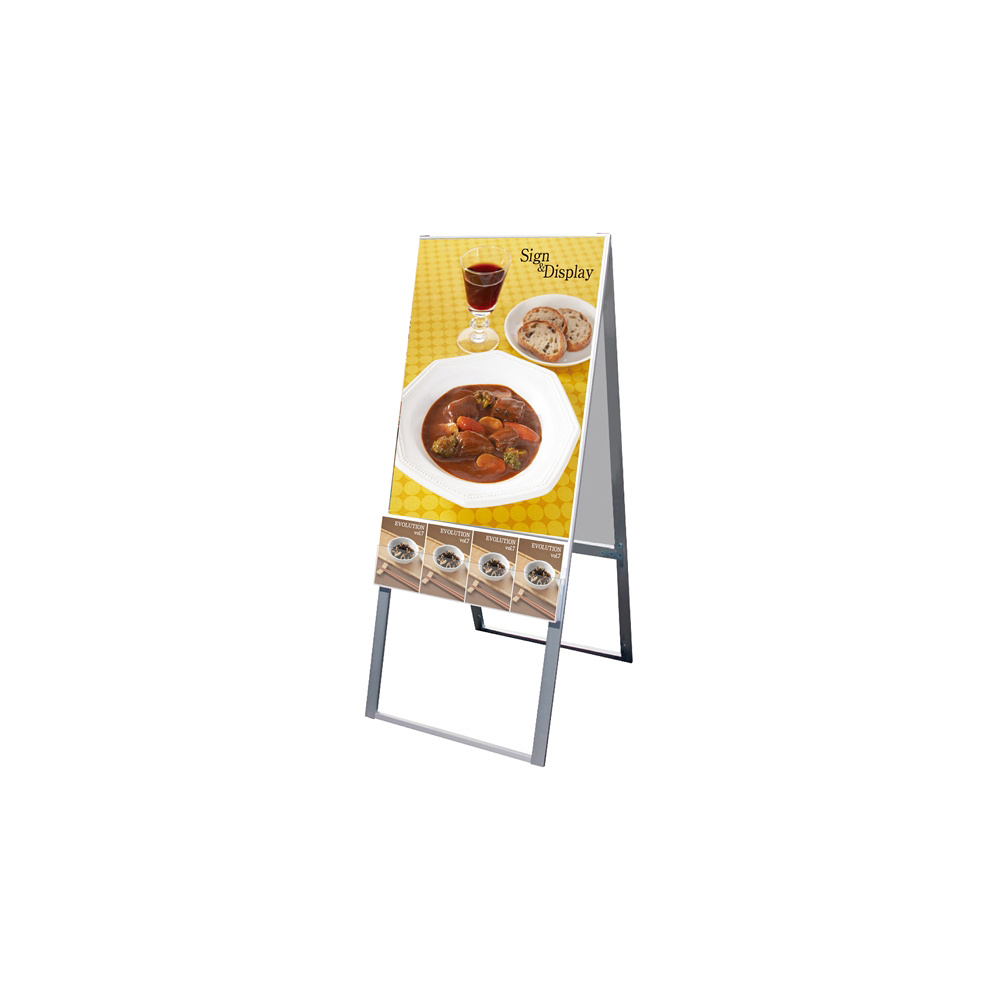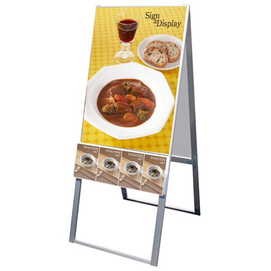 - パンフレットとポスターを同時に掲示可能なスタンド看板。