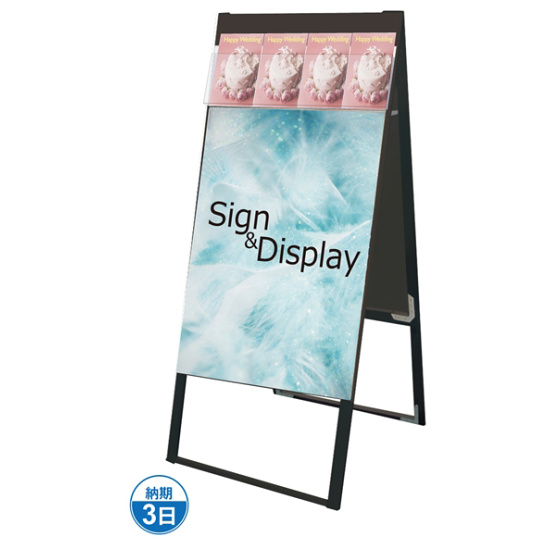 - ポスターでの告知とパンフレットやリーフレットの配布が同時にできる便利なパンフレット付スタンド看板。