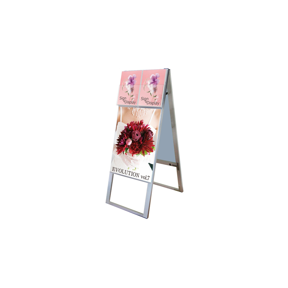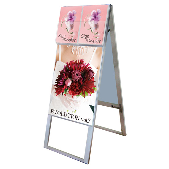 - A4サイズカタログとポスターを同時に展示可能なスタンド看板