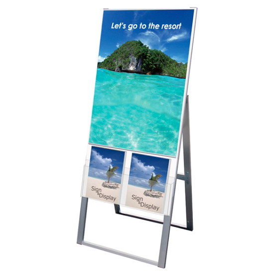 - A4サイズカタログとポスターを同時に展示可能なスタンド看板