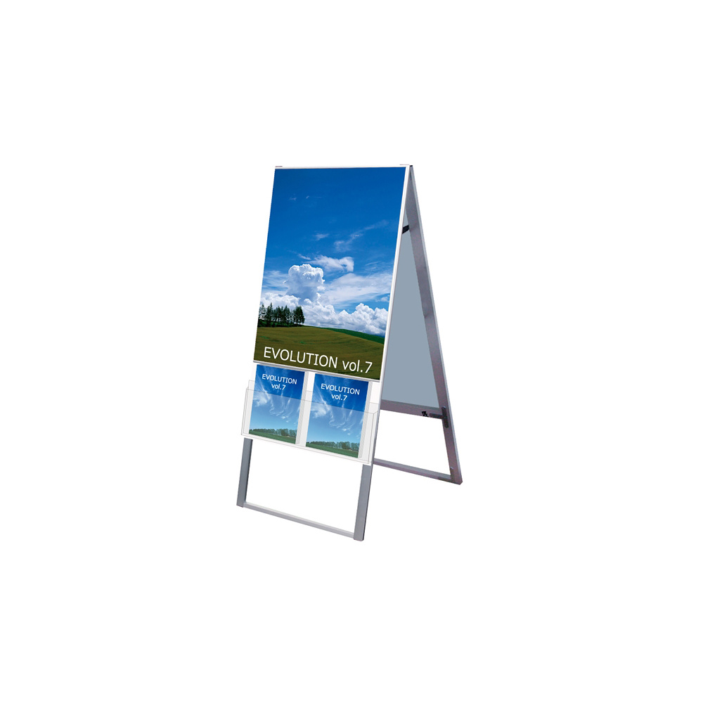 - A4サイズカタログとポスターを同時に展示可能なスタンド看板