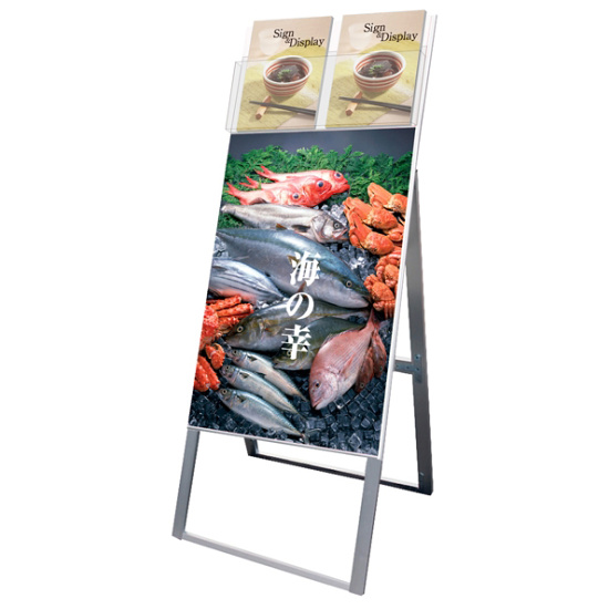 - A4サイズカタログとポスターを同時に展示可能なスタンド看板