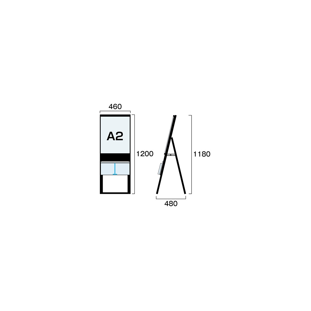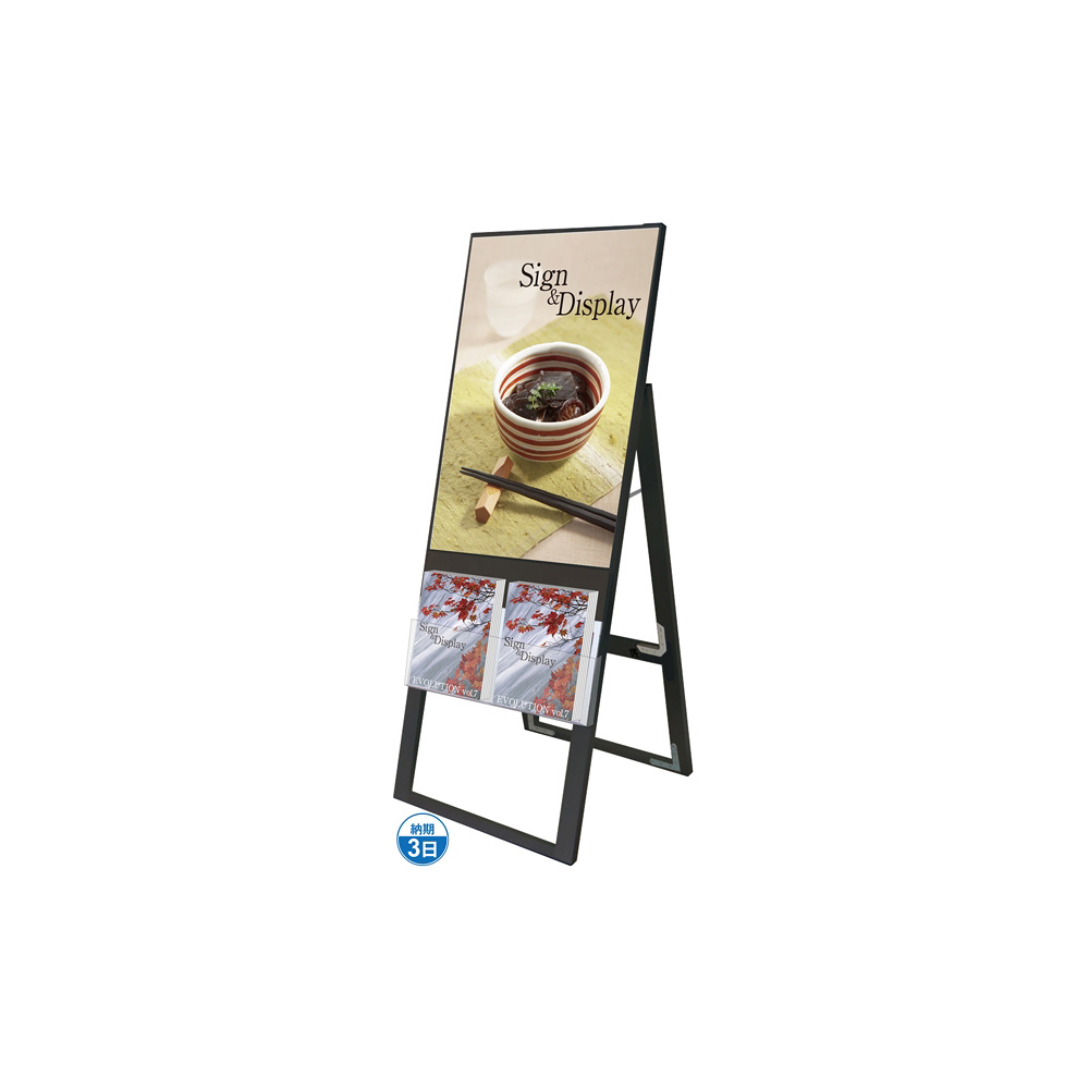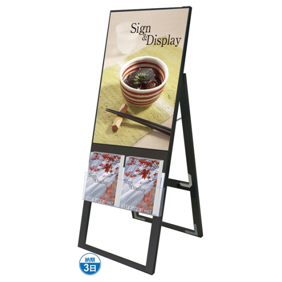 - A4サイズのカタログとポスターを同時に展示可能なスタンド看板