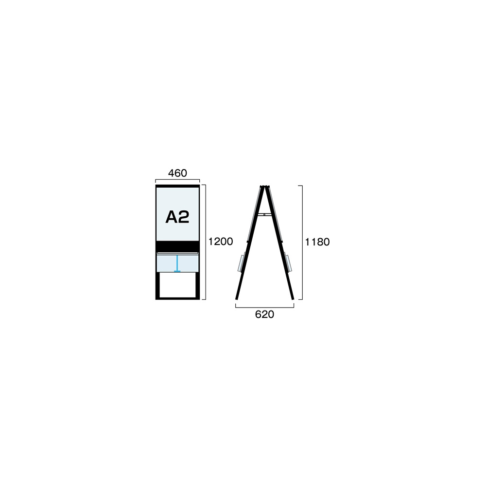 商品説明:ブラック カタログケーススタンド看板 BKCSKシリーズ 規格: A2両面 ケース下部 (BKCSKU-A2R)