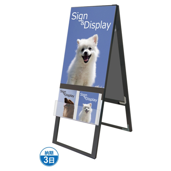 - A4サイズのカタログとポスターを同時に展示可能なスタンド看板