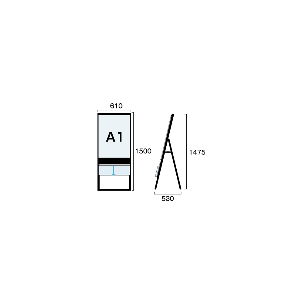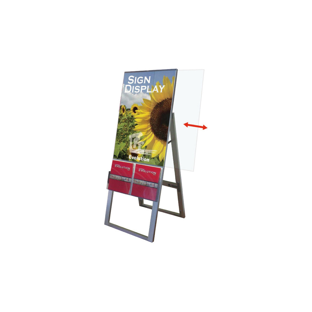 - A4サイズのカタログとポスターを同時に展示可能なスタンド看板