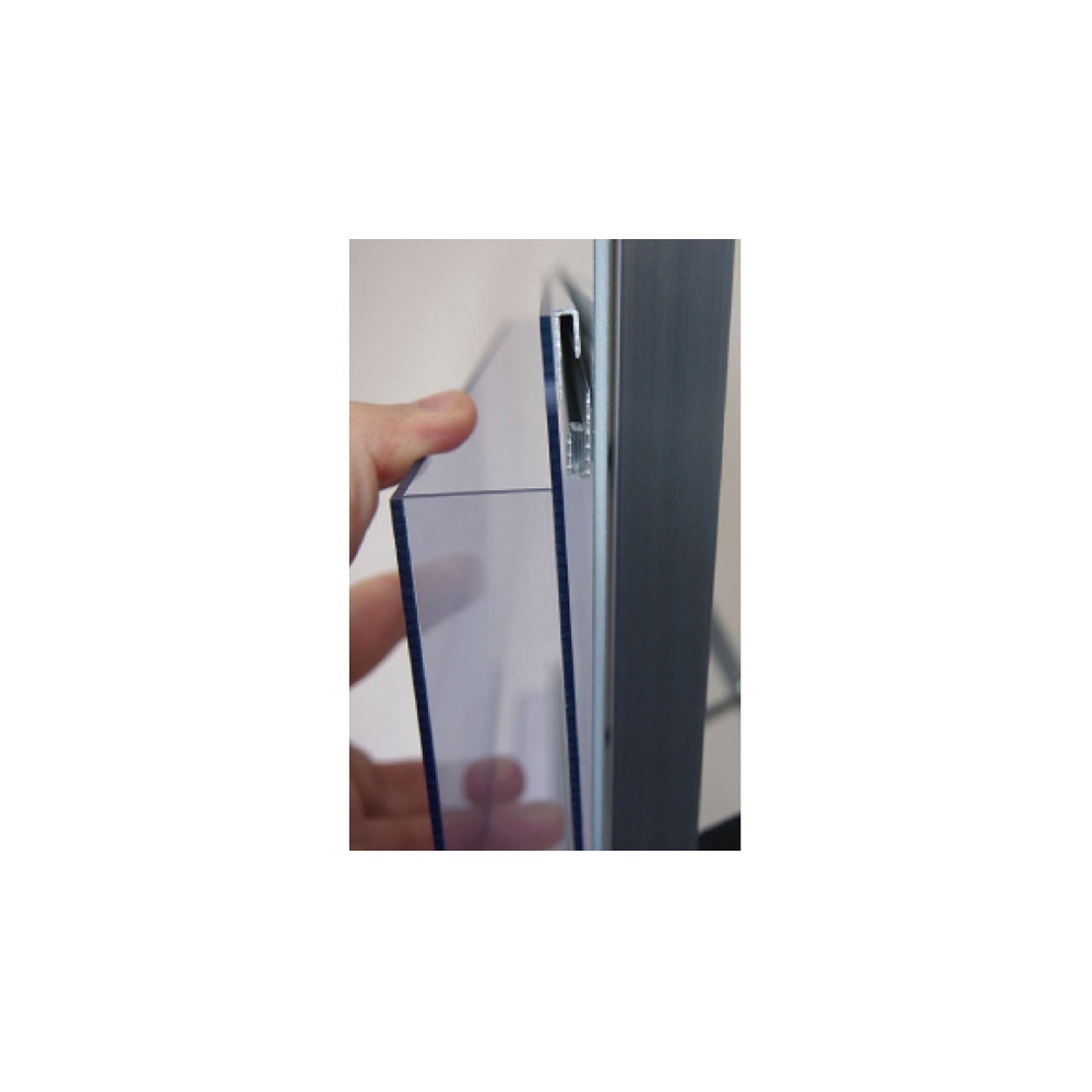 ■ポスター交換方法は楽々!カバーアクリルをレールに沿って横にスライドさせて外すだけ。(写真はシルバーシリーズ)