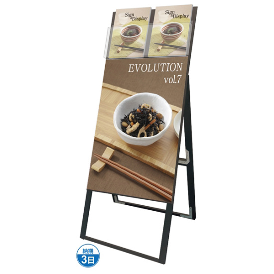 - A4サイズのカタログとポスターを同時に展示可能なスタンド看板