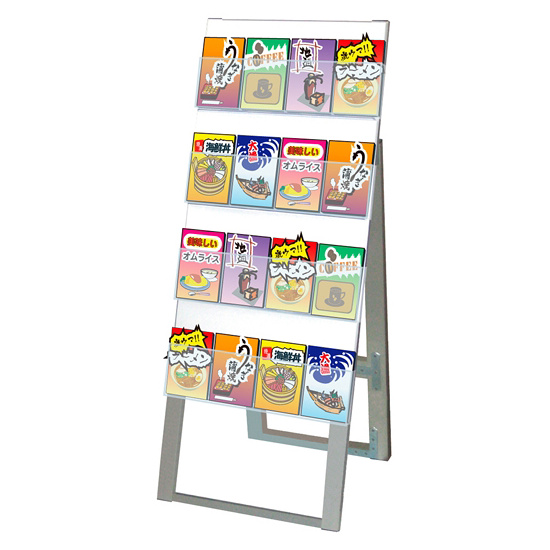 - パンフレットを4段も展示可能なスタンド看板です