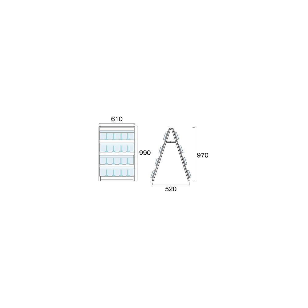 商品説明:ケーススタンド看板 規格:600幅 4段両面 (CSK-600X8R)