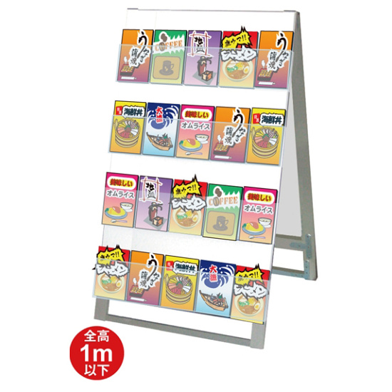 - パンフレットを4段も展示可能なスタンド看板です