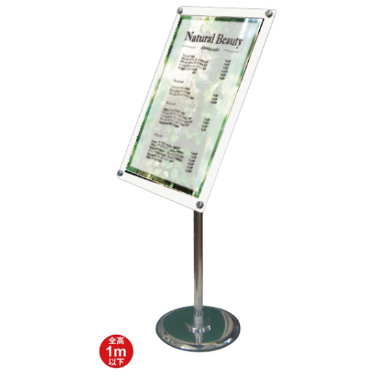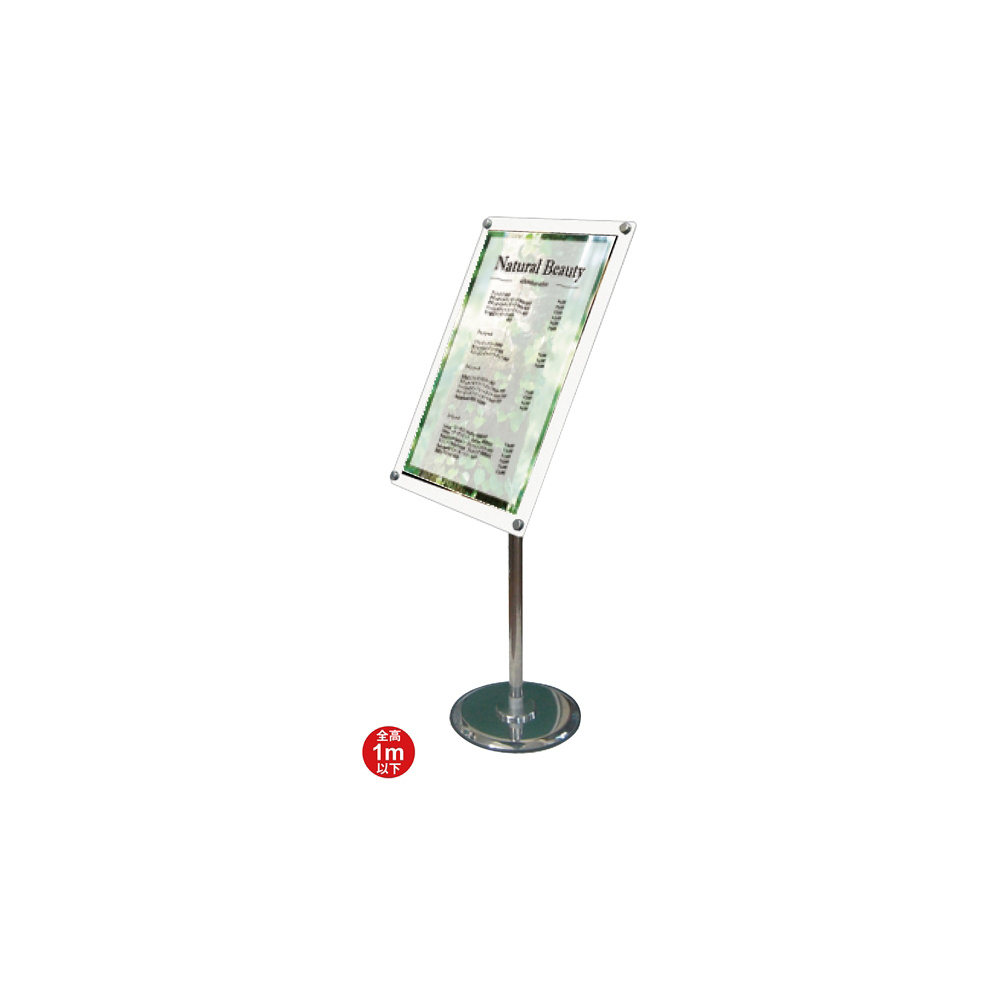 - 化粧ビスの付いたアクリルパネル付スタンドのフリーアングルタイプ
