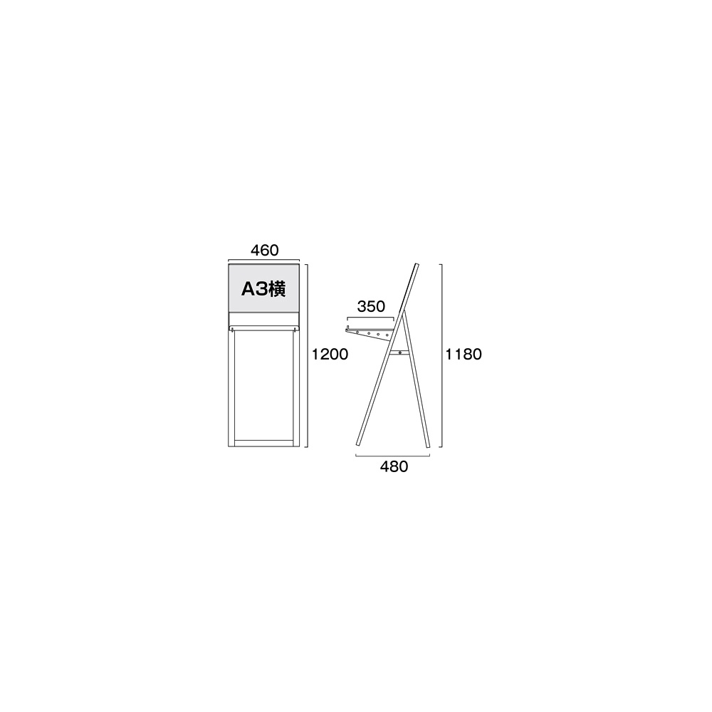 - A3サイズのサインと展示物が一緒に置ける1台2役の働き者スタンドです。