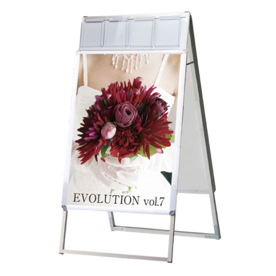 ポスターで告知、パンフレットで後押しできる一体型看板。