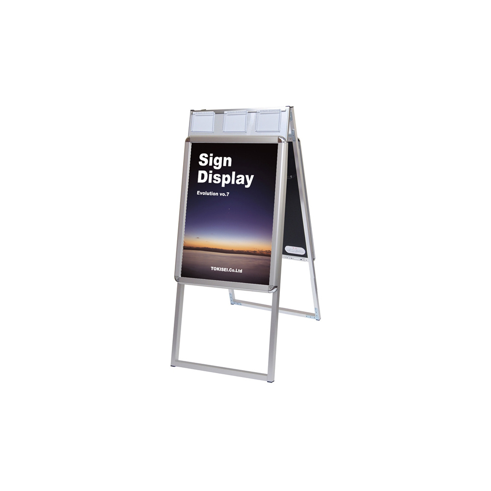 屋内用パンフレットケース付 ポスターグリップスタンド看板 規格:A2両面 シルバー (PGSKP-A2RS)