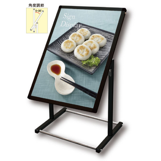 - 紙のポスターを背面板とアクリルカバーの間に挟んで展示する看板です。