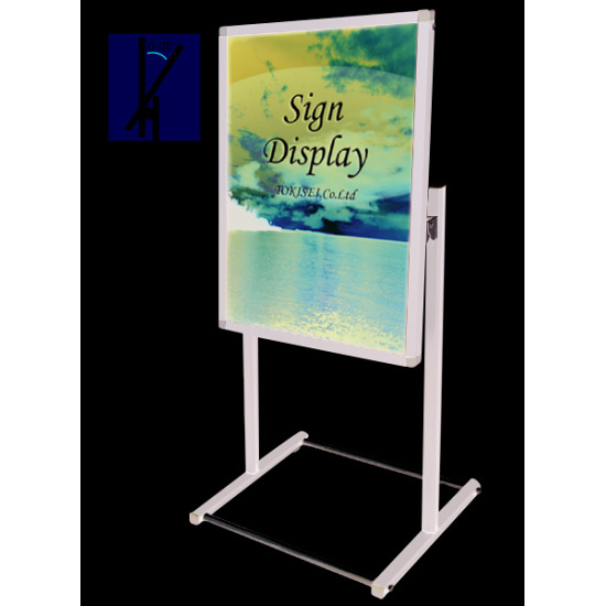 - 紙のポスターを背面板とアクリルカバーの間に挟んで展示する看板です。