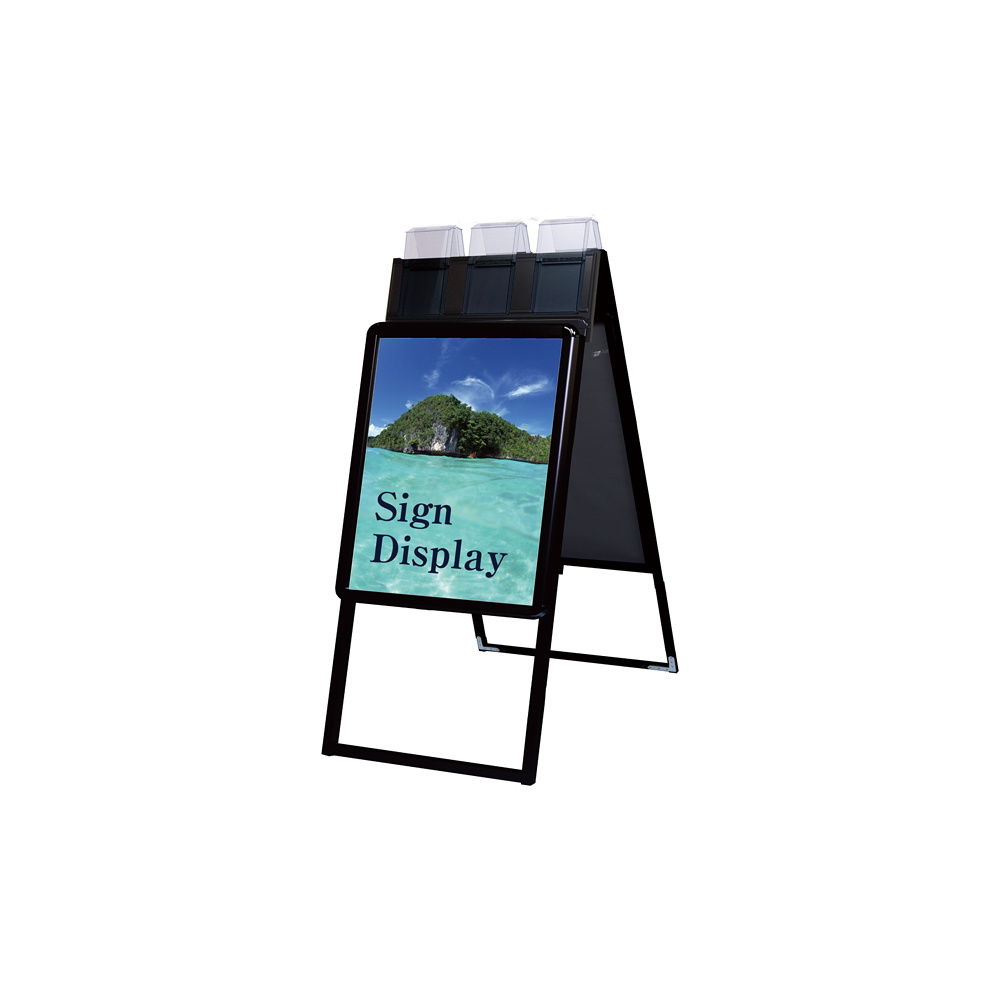 商品説明:ポスターグリップスタンド看板パンフレットケース付(屋外用) A2サイズ 規格:両面 ブラック (PGSKP-A2RB-G)