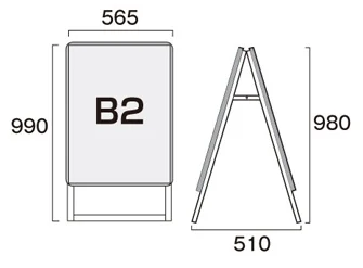 B2サイズの屋内用A型看板。純国産だから安心、高品質で低価格を実現したパネル付のスタンド。
