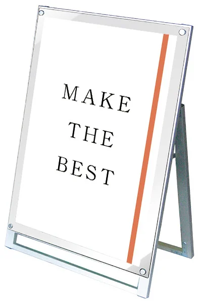 - ベストセラー商品としてご紹介するアクリルカバーと化粧ビスの美しさが人気のスタンド看板です。