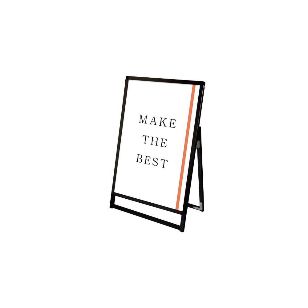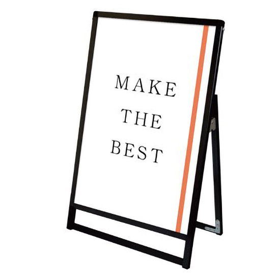 - 従来品のポスター用スタンド看板のように紙のポスターを背面板とアクリルカバーの間に挟んで展示する看板です。