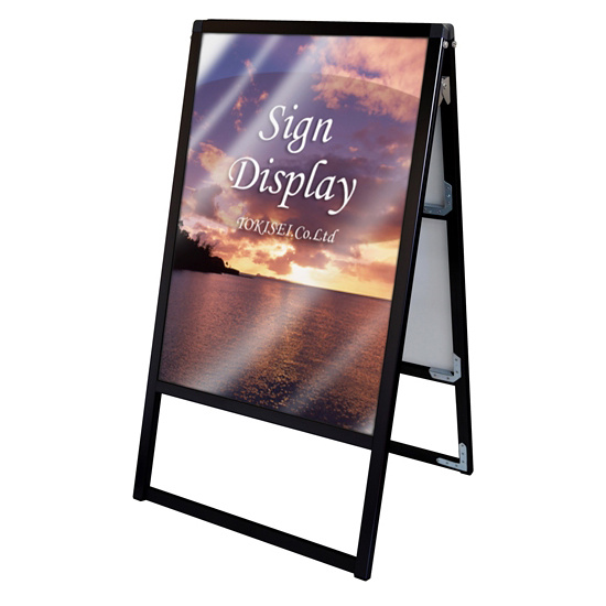 - 従来品のポスター用スタンド看板のように紙のポスターを背面板とアクリルカバーの間に挟んで展示する看板です。