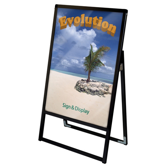 - 従来品のポスター用スタンド看板のように紙のポスターを背面板とアクリルカバーの間に挟んで展示する看板です。