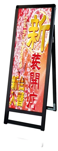 - 紙のポスターを背面板とアクリルカバーの間に挟んで展示する看板です。