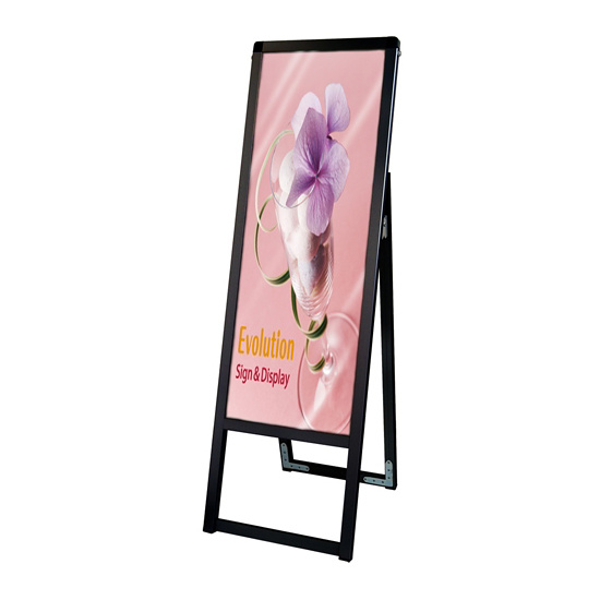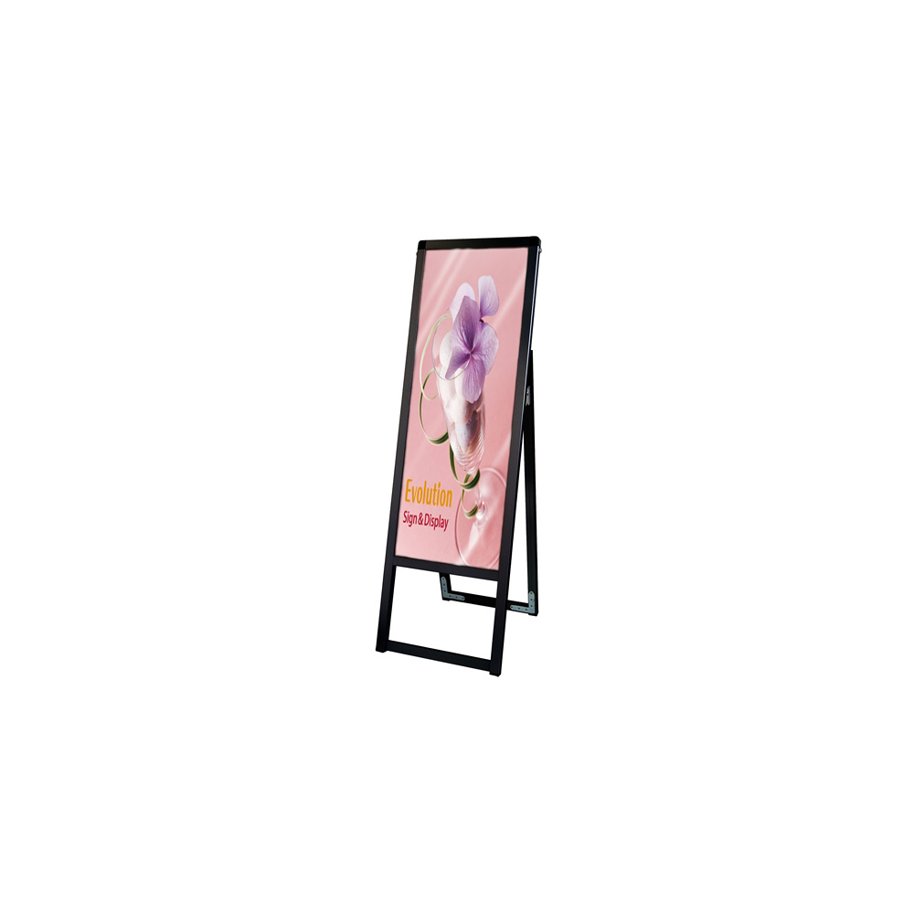 - 従来品のポスター用スタンド看板のように紙のポスターを背面板とアクリルカバーの間に挟んで展示する看板です。