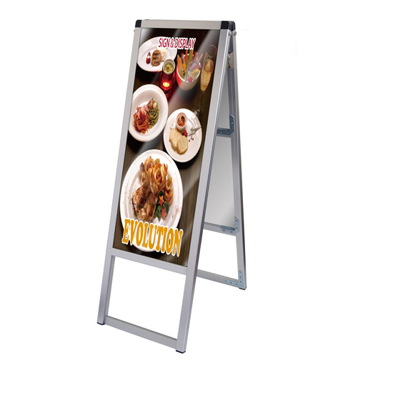 - 従来品のポスター用スタンド看板のように紙のポスターを背面板とアクリルカバーの間に挟んで展示する看板です。