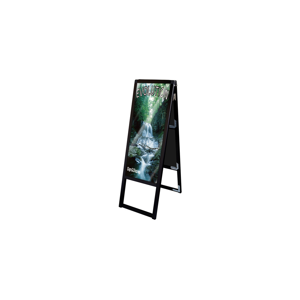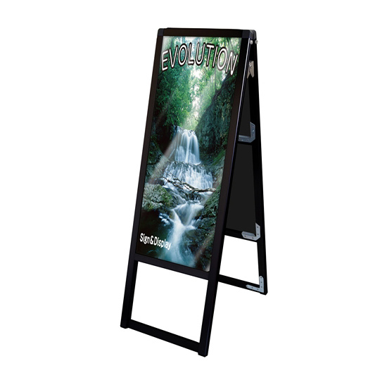 - 従来品のポスター用スタンド看板のように紙のポスターを背面板とアクリルカバーの間に挟んで展示する看板です。