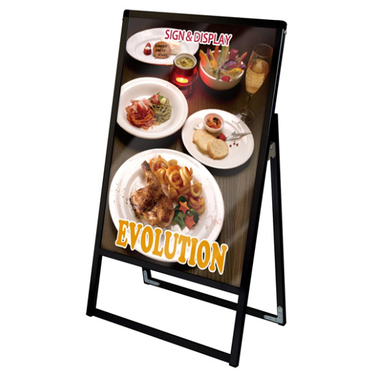 - 従来品のポスター用スタンド看板のように紙のポスターを背面板とアクリルカバーの間に挟んで展示する看板です。