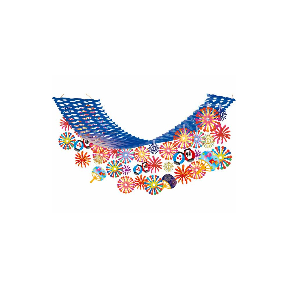 「【2025年夏】提灯花火(青)プリーツハンガー (No178-23_04)」の導入をご検討中ですか? 大量注文・複数台のご検討に応じたお見積りのご相談、最短納期や送料、仕様・サイズの確認など、 夏の天吊り装飾・天吊ガーランド・ポップハンガー選びをまとめてサポートいたします。