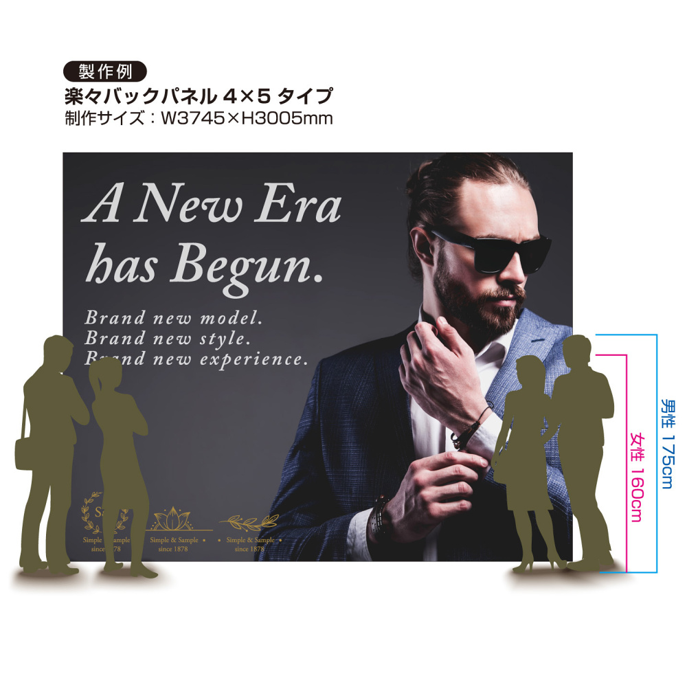 楽々!バックパネルスタンド4×5用 印刷製作代 (※本体別売) 防炎トロクロス【つなぎ目なしの1枚布】 サイドカバー有り 本体同時購入用 (Print-29936-FV2) |
