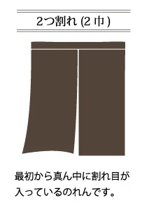 ■2つ割れ(2巾):最初から真ん中に割れ目が入っているのれんです。