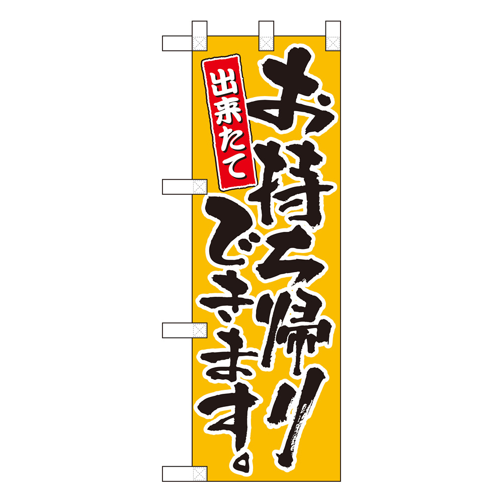 商品の持ち帰りができることをアピールするハーフのぼりです
